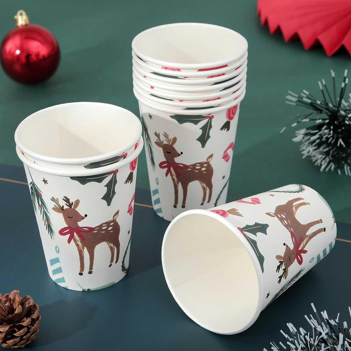 Christmas disposable tableware, used for Christmas party table, can increase the party atmosphere, clean and beautiful. |