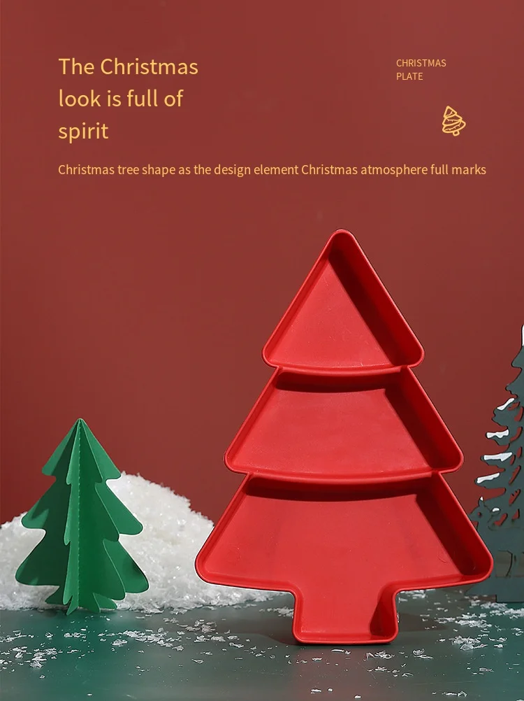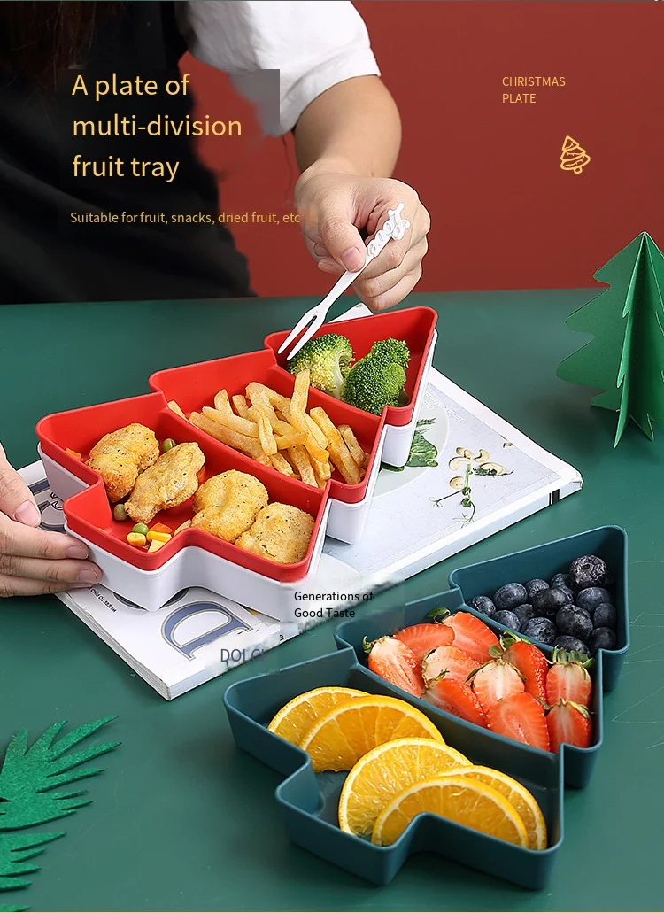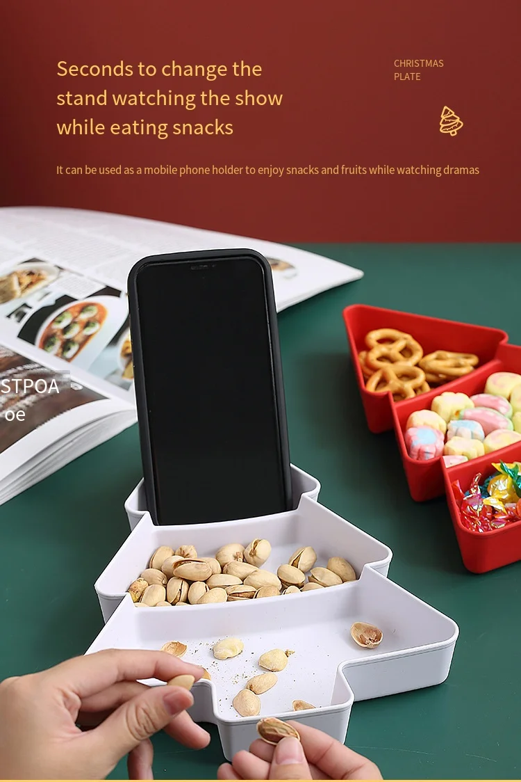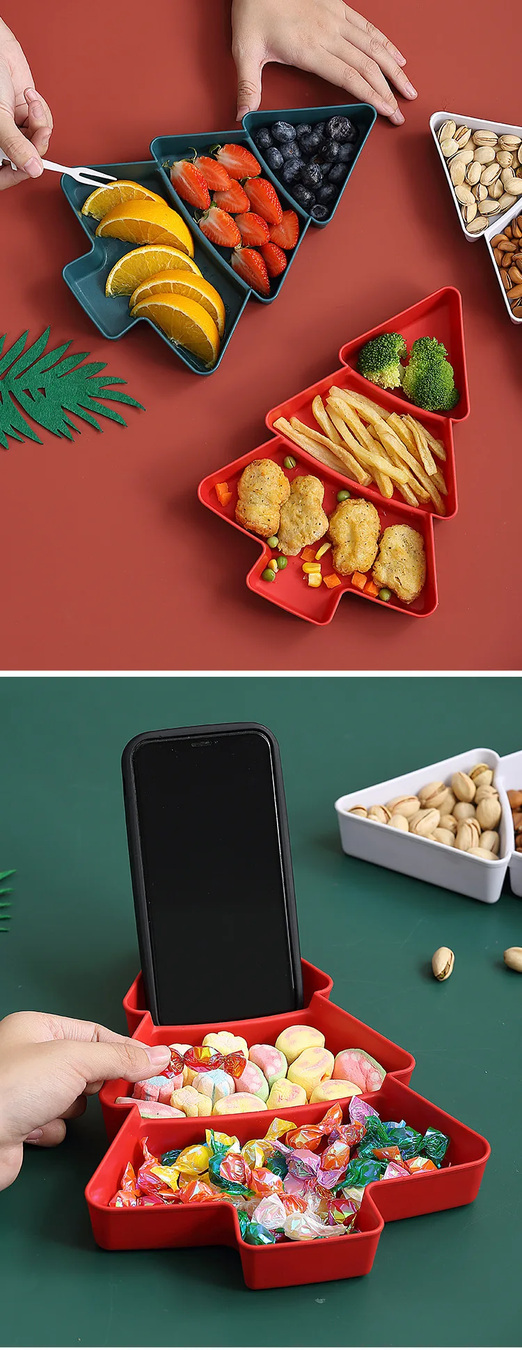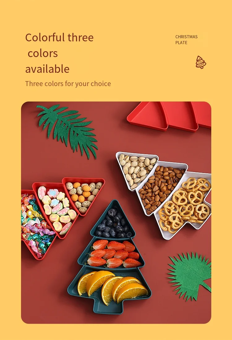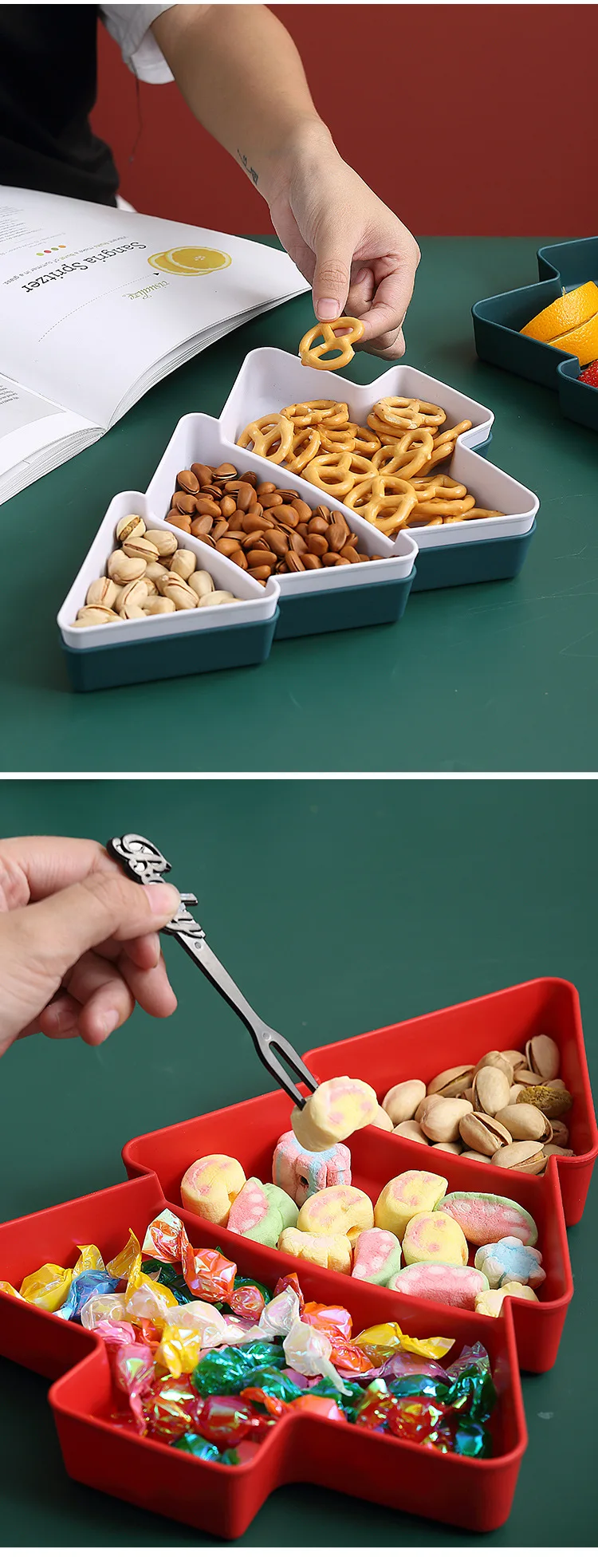Christmas Tree Fruit Plate Shape Candy Snacks Nuts Dry Fruits Plastic Plate Snack Dishes Bowl Merry Christmas Party Decorations