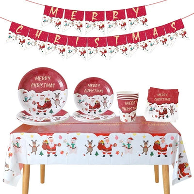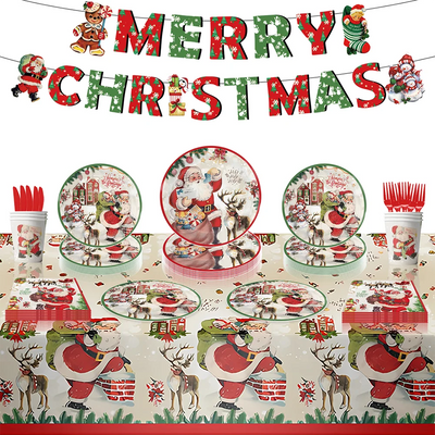 Christmas Set Disposable Paper Plate Decorative Tissue Cups and Paper Plates Tablecloth Decorations