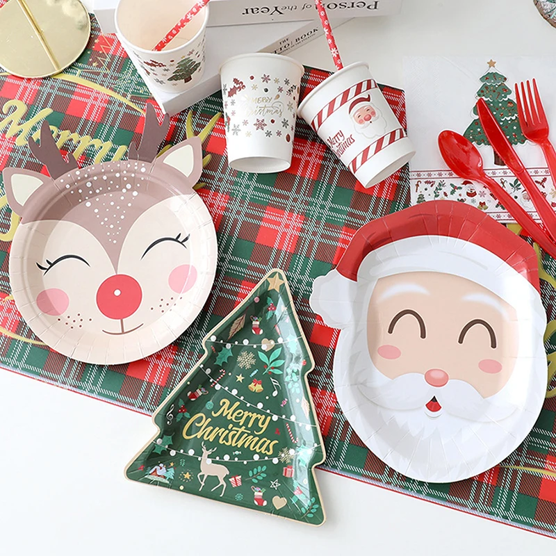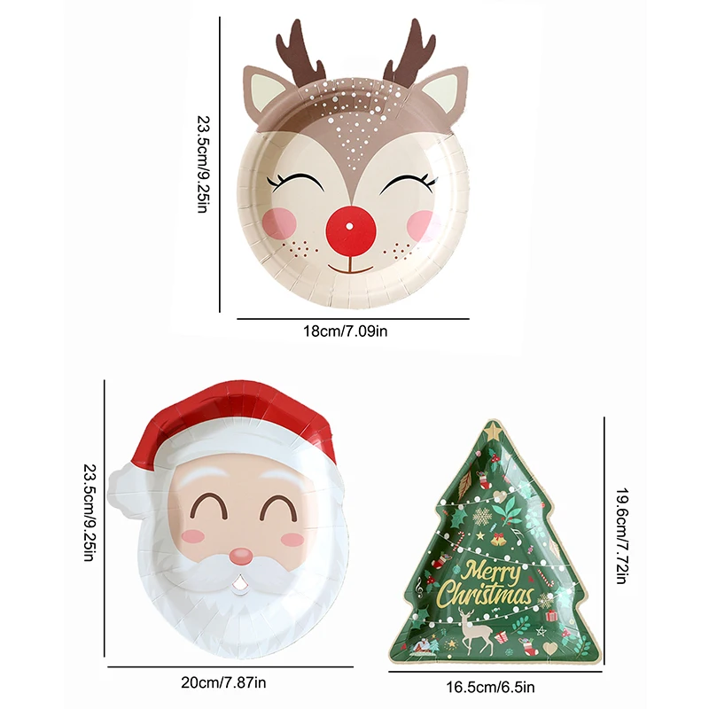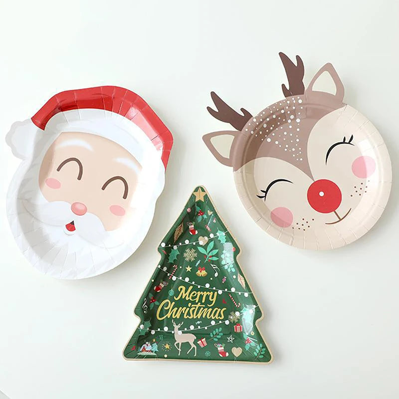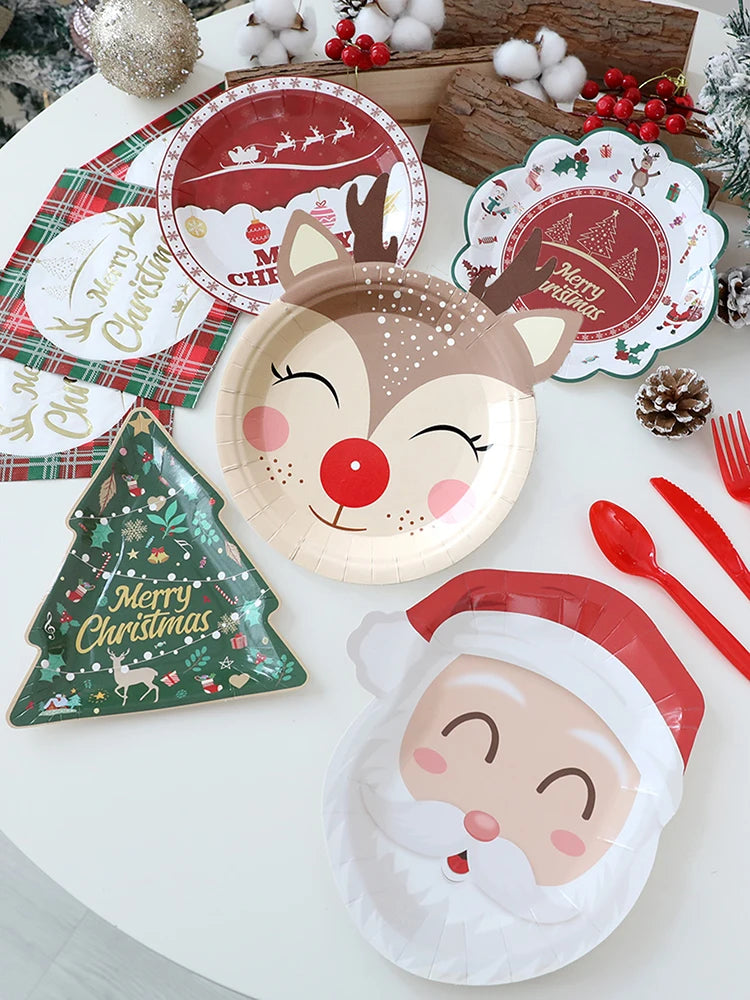 10 pcs/bag Christmas Party Disposable Cartoon Plate Set