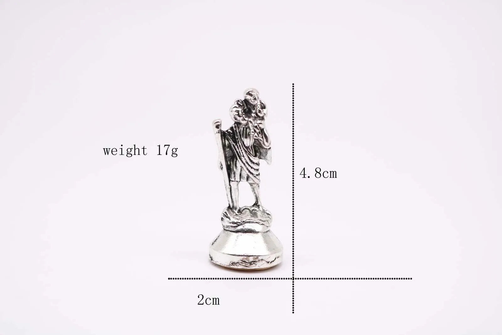 Christian Car Dashboard Decoration featuring a silver Jesus figurine, 4.8cm tall, 2cm base, 17g weight.