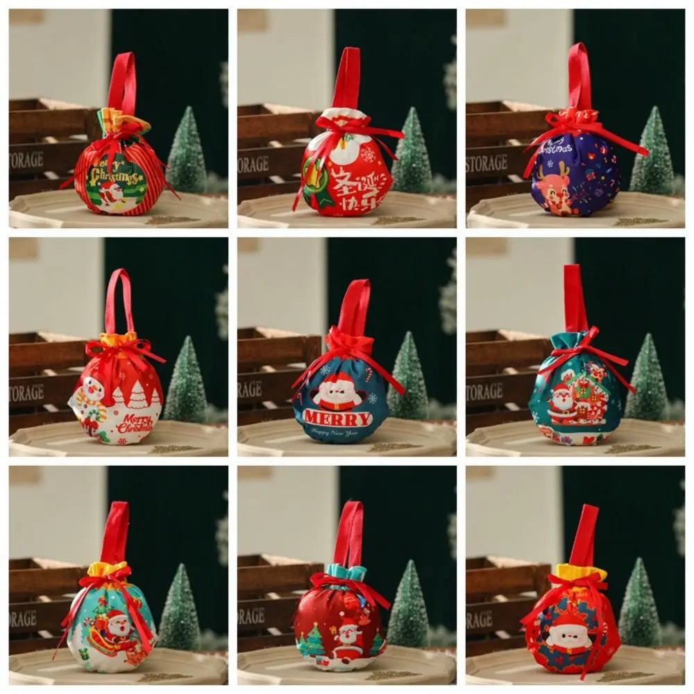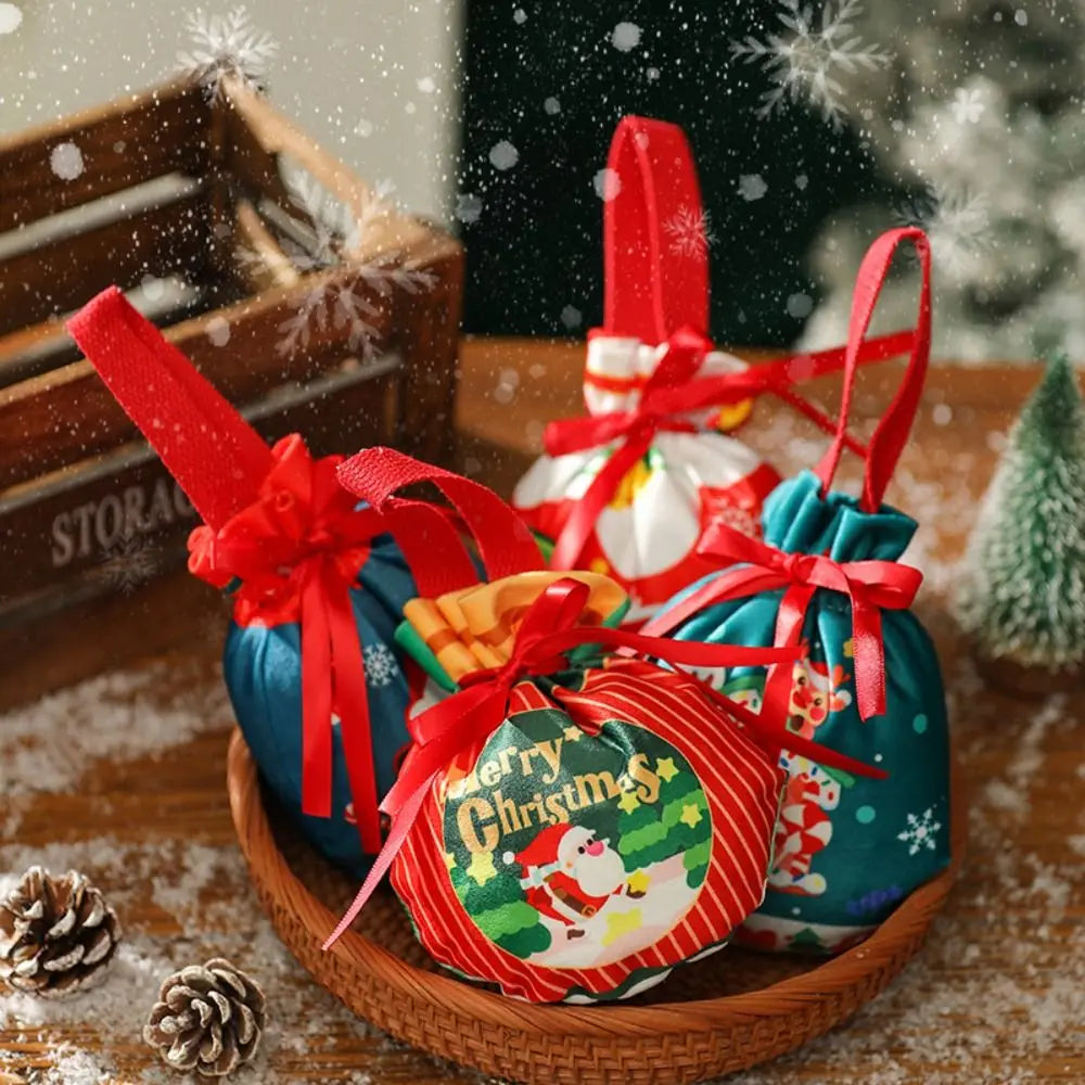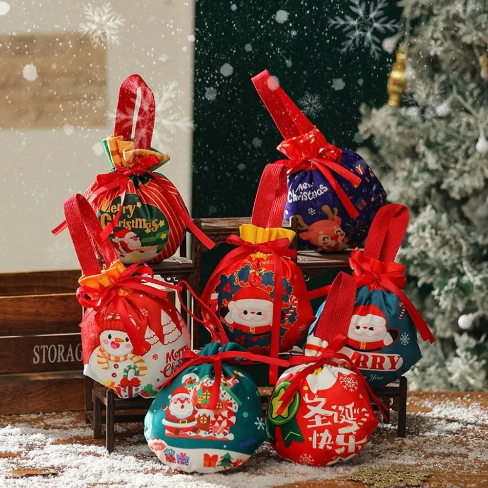 with Handle Christmas Gift Bag Storage Bag Cloth Candy Snack Gift Bag Reusable Exquisite Christmas Candy Bag